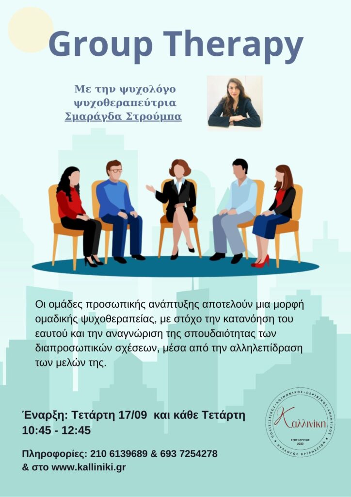 Group Therapy με την ψυχολόγο MSc - ψυχοθεραπεύτρια Σμαράγδα Στρούμπα. Οι ομάδες προσωπικής ανάπτυξης αποτελούν μια μορφή ομαδικής ψυχοθεραπείας, με στόχο την κατανόηση του εαυτού και την αναγνώριση της σπουδαιότητας […]