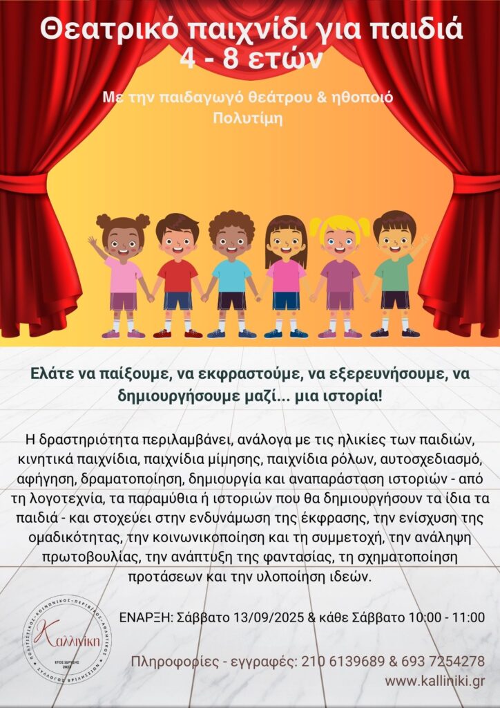 Η Θεατρική Ομάδα της ΚΑΛΛΙΝΙΚΗΣ… ΑΝΑΝΕΩΜΕΝΗ και ΔΥΝΑΜΙΚΗ! Με μεγάλη χαρά σας παρουσιάζουμε τους δύο νέους δασκάλους μας: τους ταλαντούχους και αγαπημένους ηθοποιούς Βασίλη Τριχά και Αλέξανδρο Δαβιλά Δύο καταξιωμένοι […]